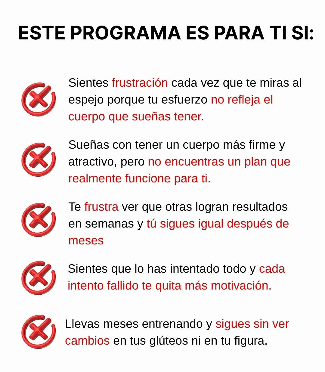 Importante: Los resultados varían según tu constancia y compromiso. Si sigues el programa 4-5 veces por semana, los cambios son inevitables. Este no es un programa mágico, es un programa que FUNCIONA si tú haces tu parte.